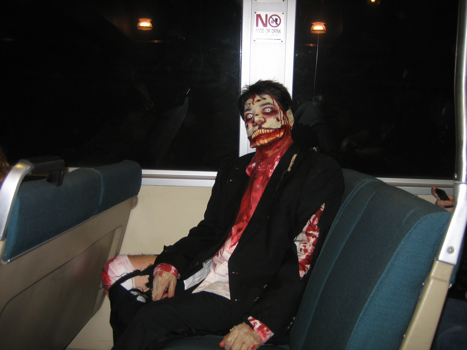 Below is a picture of me going home on BART after that costume party. (For some reason, nobody wanted to take the seat next to me.)